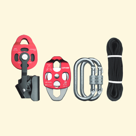 提拉滑輪x1,側板雙滑輪x1,O型鋼鎖x2,10.5mm速降繩x1